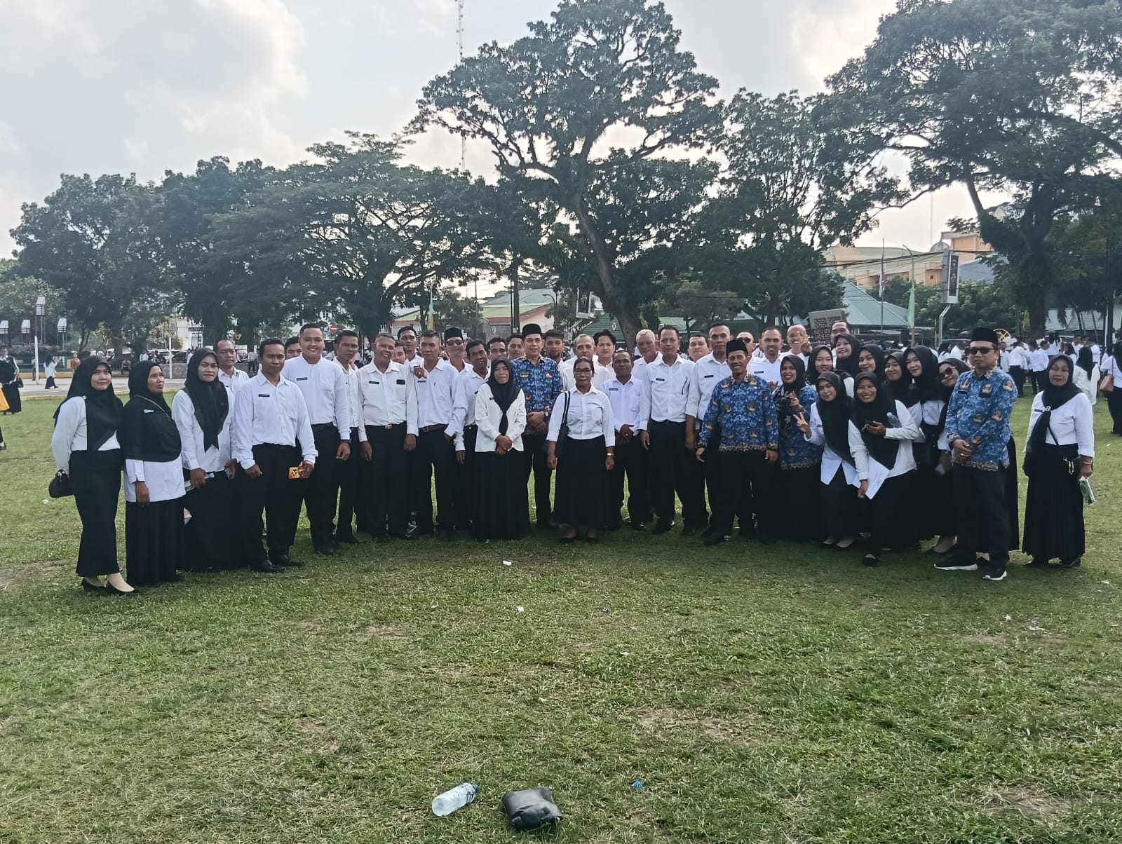 Para Pegawai Dinas Ketenagakerjaan, Perindustrian dan Perdagangan Kota Binjai menghadiri Upacara HUT Ke-54 KORPRI Tahun...